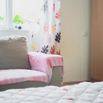 The apartment includes a fully equipped kitchen fitted with an electric kettle, a fridge, and an oven for self-catering. Guests can benefit from cots and high chairs provided for children.